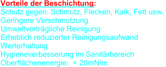 Verschmutzung ist deshalb ein 100%iges abperlen nic